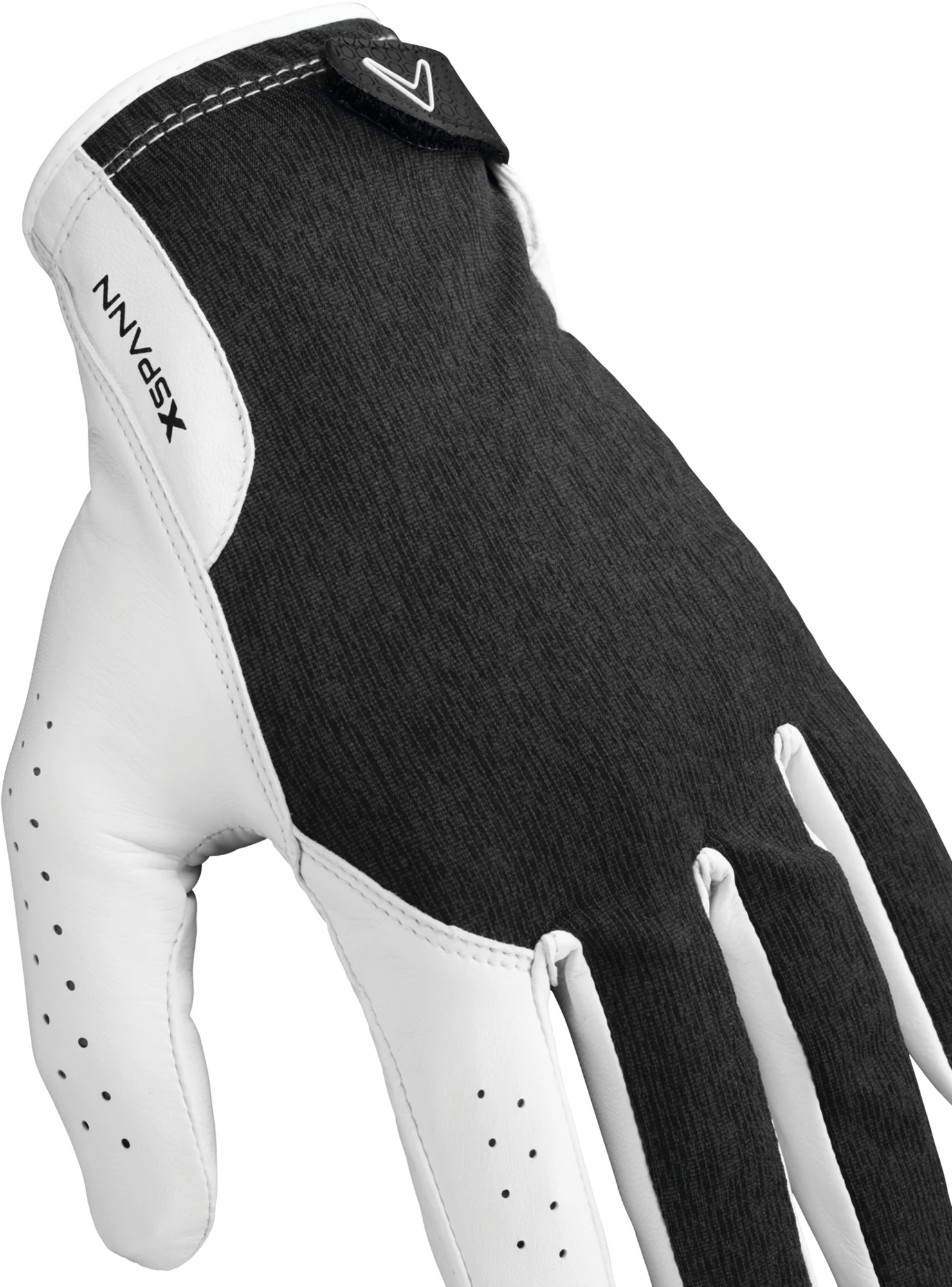 The optimal blend of technology and performance, Callaway X Spann Golf Gloves enable remarkable grip performance and comfort. Callaway’s first compression fit golf glove features premium Cabretta leather infused with Griptac to create a 20% increase in tackiness over prior models. An X Spann 4-way stretch construction combines with a stretch cotton terry cuff to create moisture wicking, breathability and UPF 50+ sun protection. The Opti Fit perforated adjustable closure creates a secure, breathable fit.