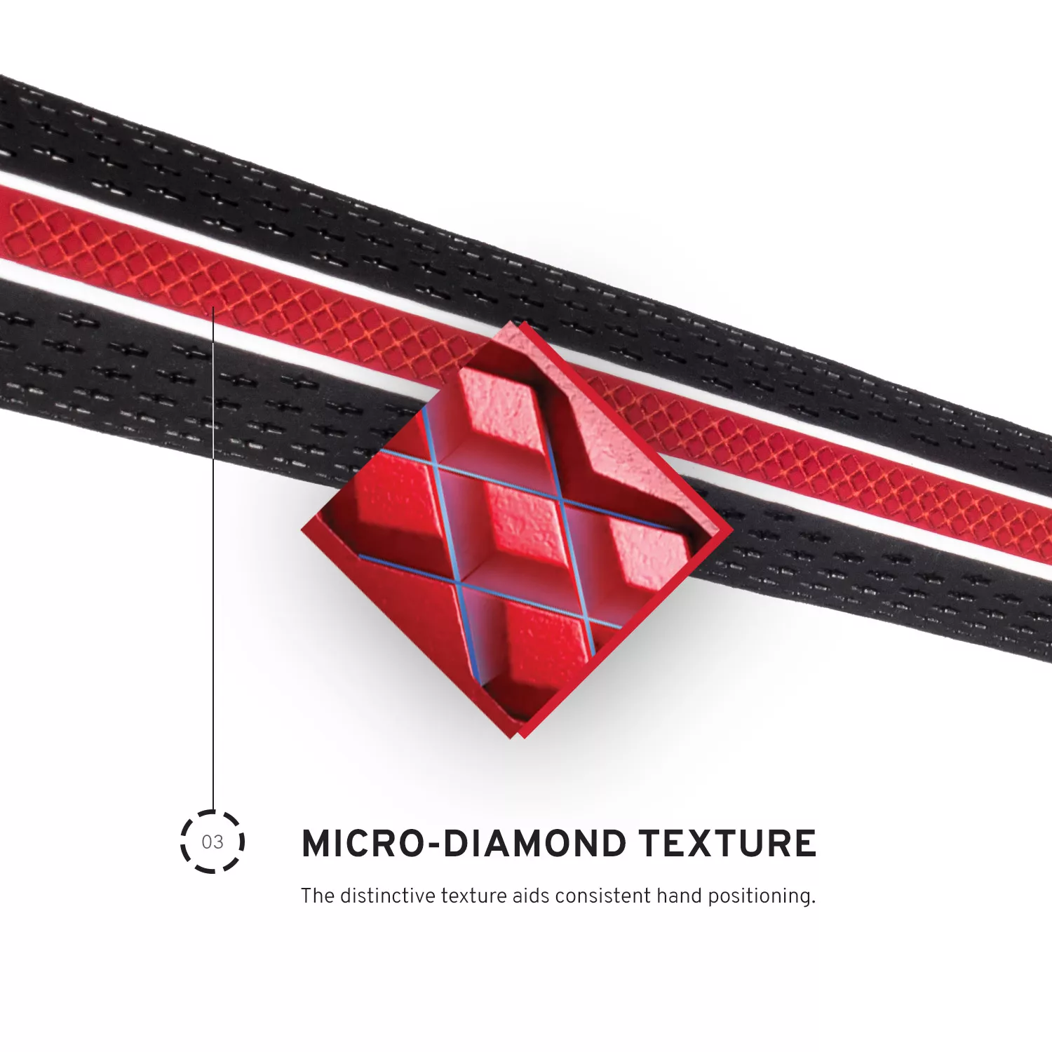 - Distinctive micro-diamond ridge texture promotes more consistent hand positioning
